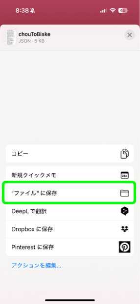 3: 「”ファイル”に保存」を選択して、任意の場所に引き継ぎデータを保存します。