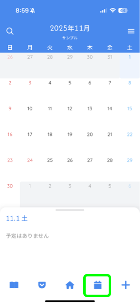 4: 次にカレンダー画面から画面下部にある、右から2番目のボタンをタップします。
